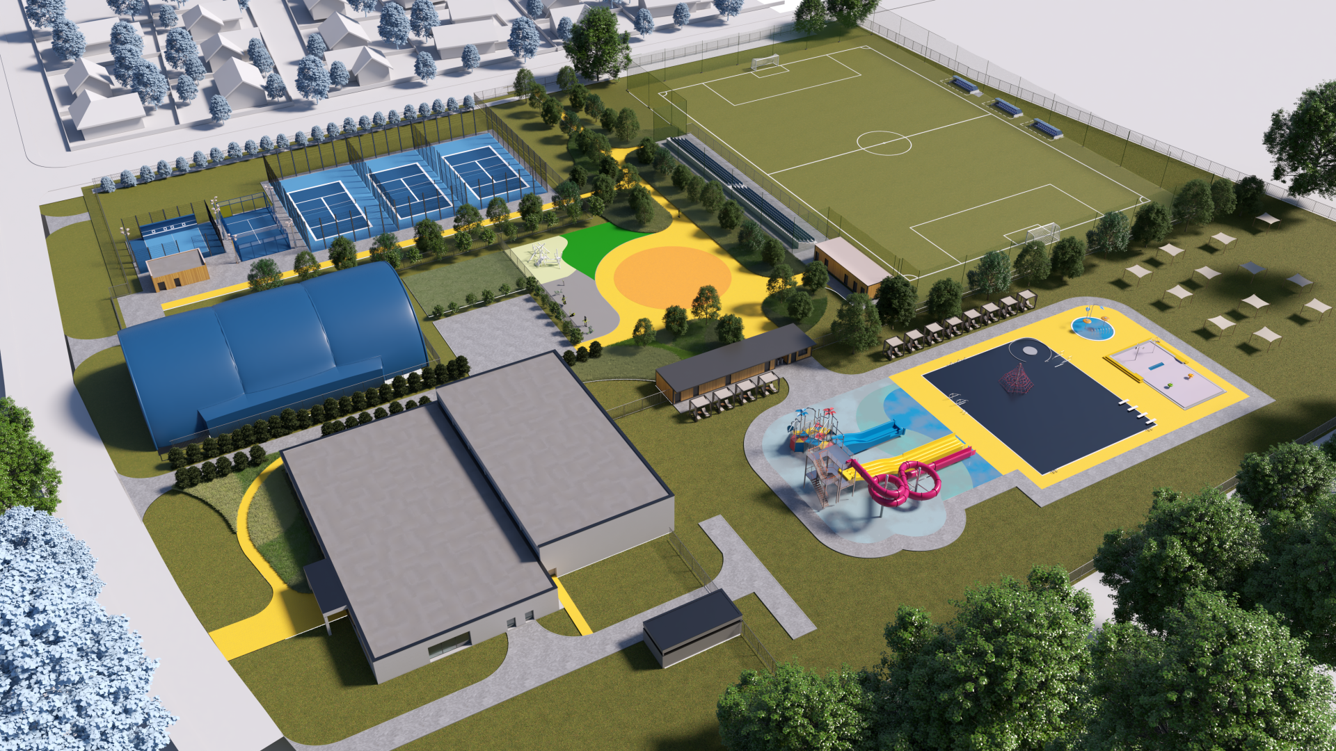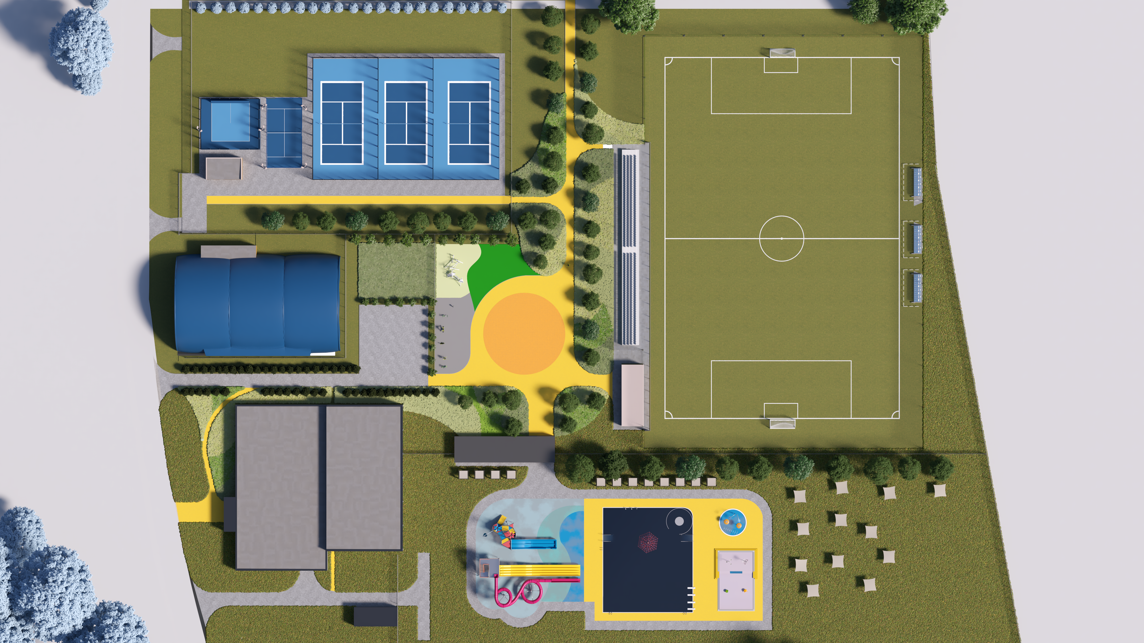 - Zespół kortów tenisowych (3 korty z zadaszeniem), boisko do gry w padla, ściankę treningową oraz zaplecze sanitarne.